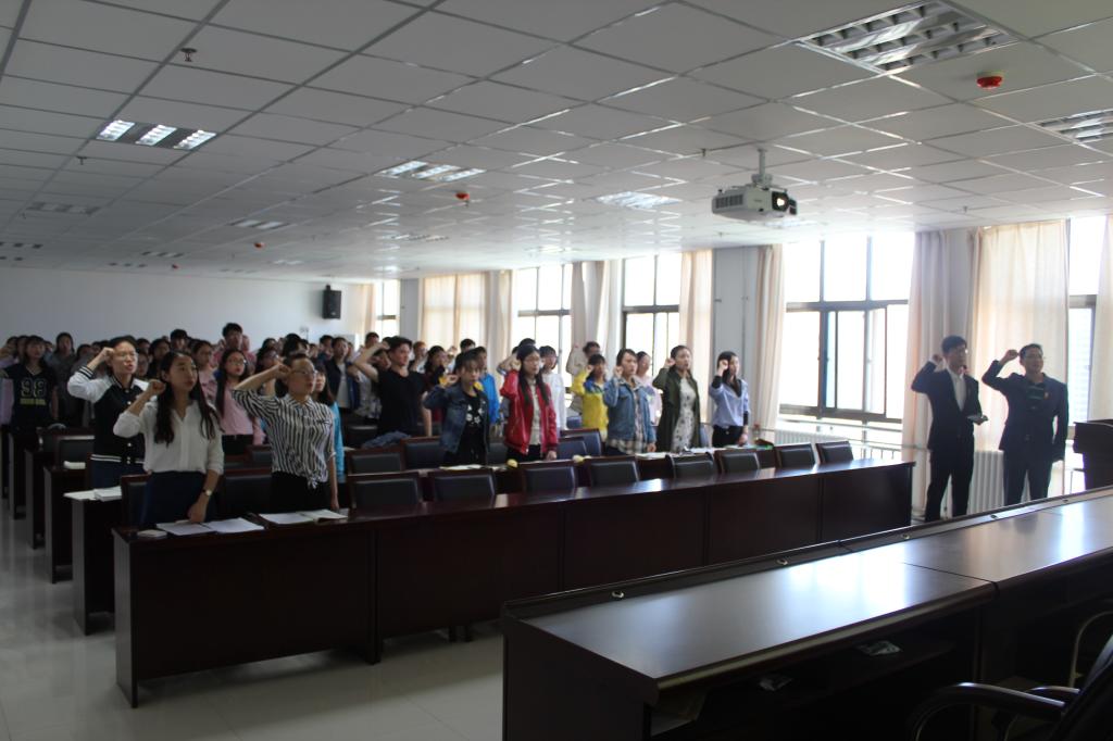 訾冉老師分別從中國(guó)共青團(tuán)的發(fā)展歷程、中國(guó)共青團(tuán)團(tuán)章的相關(guān)要求、“一學(xué)一做”教育實(shí)踐活動(dòng)、怎樣做一名合格團(tuán)員等方面,給大家做了一次深入的思想引領(lǐng)。訾冉老師強(qiáng)調(diào)合格共青團(tuán)員不僅在思想、品行方面嚴(yán)格要求自己,更是要知行合一,堅(jiān)定共產(chǎn)主義遠(yuǎn)大理想和中國(guó)特色社會(huì)主義共同理想,牢固樹(shù)立政治意識(shí)、大局意識(shí)、核心意識(shí)、看齊意識(shí),做合格共青團(tuán)員,在實(shí)現(xiàn)中國(guó)夢(mèng)的實(shí)踐中放飛青春夢(mèng)想。最后,全體團(tuán)員在訾冉老師的帶領(lǐng)下重溫入團(tuán)誓詞,鏗鏘有力的誓詞激勵(lì)振奮著每位共青團(tuán)員,擲地有聲的宣誓聲展現(xiàn)了共青團(tuán)員積極進(jìn)取的精神風(fēng)貌。