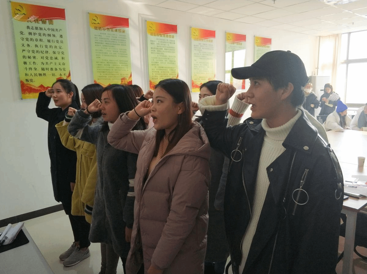 會上,9名黨員發(fā)展對象分別從思想、學(xué)習(xí)和工作等各方面匯報了自己的情況,表明了自己積極向黨組織靠攏的態(tài)度。隨后,經(jīng)支部正式黨員無記名投票表決,一致同意吸收于超等9名黨員發(fā)展對象成為預(yù)備黨員。最后,在支部書記王嘉興同志的帶領(lǐng)下,所有新發(fā)展的預(yù)備黨員面對黨旗莊嚴(yán)宣誓。