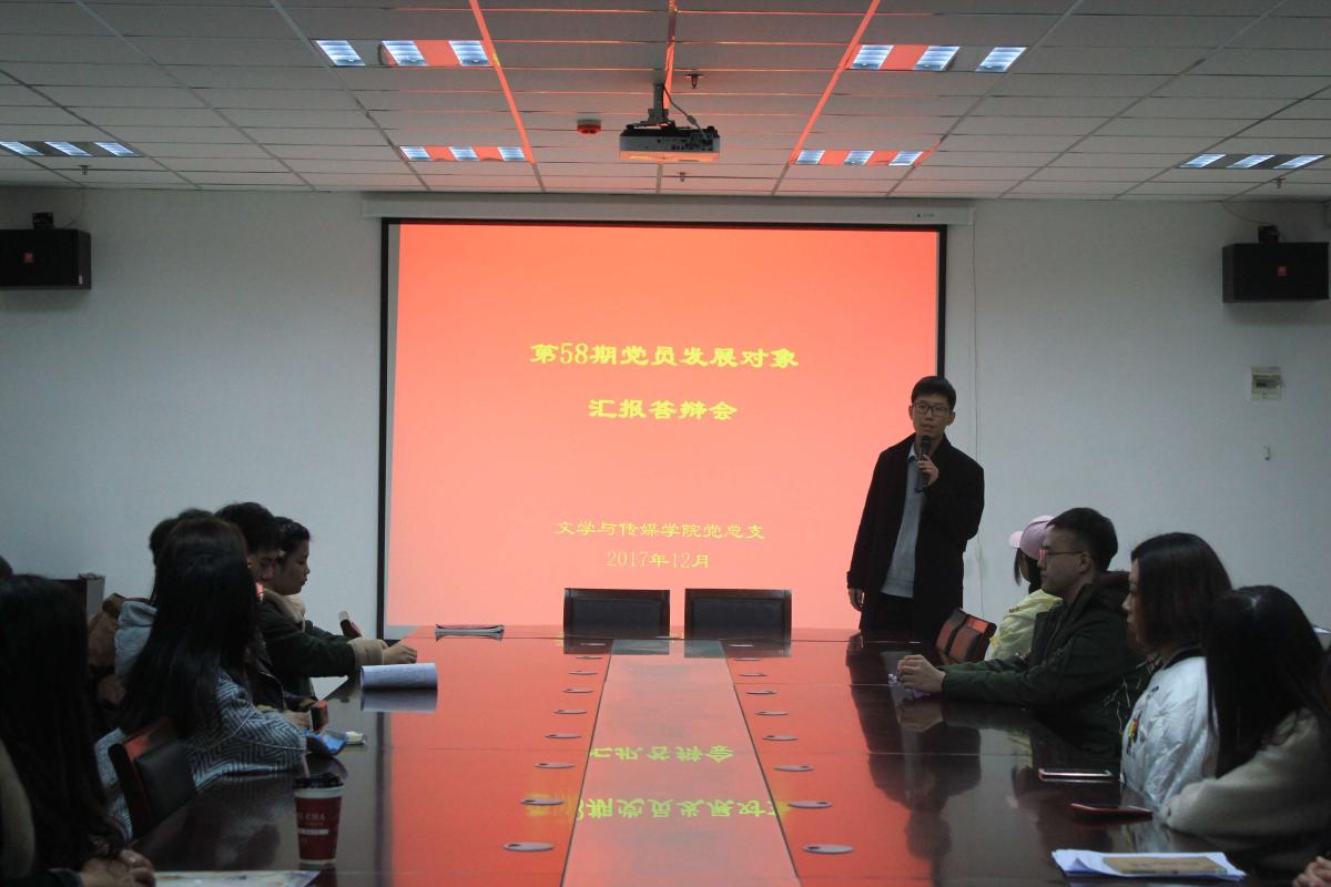 12月26下午七點,文學與傳媒學院在文科綜合樓1417會議室舉行本學期黨員發(fā)展對象匯報答辯會。我院黨總支副書記李立夏、學生第三黨支部書記訾冉出席本次會議,我院本學期黨員發(fā)展對象和入黨積極分子參加了本次會議。