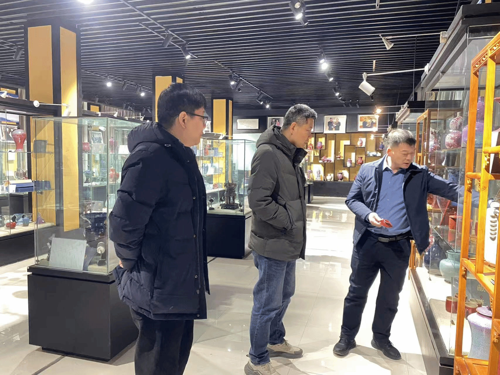 考察組先后走訪了禹州坪山鈞窯有限公司和禹州市亨盛鈞窯有限公司。走訪過程中,李立夏書記一行深入企業(yè)生產(chǎn)一線、設(shè)計(jì)工作室及展示空間,詳細(xì)了解鈞瓷線上銷售情況、制作工藝、產(chǎn)業(yè)發(fā)展現(xiàn)狀、企業(yè)文化與人才結(jié)構(gòu),并就校企協(xié)同育人、實(shí)習(xí)就業(yè)基地建設(shè)、畢業(yè)生招聘等議題,與企業(yè)負(fù)責(zé)人進(jìn)行了務(wù)實(shí)深入的交流。