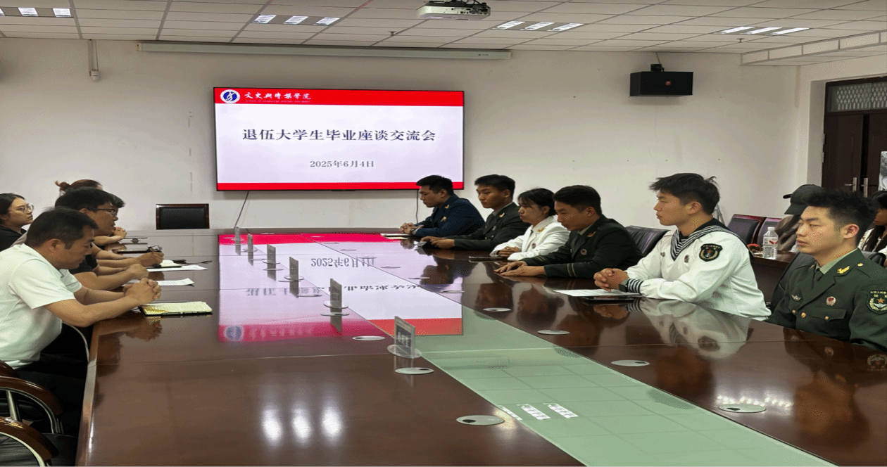 2025年6月4日下午,我院在文綜樓1723會議室召開2025屆退伍大學(xué)生畢業(yè)座談會。學(xué)院黨委書記李立夏、黨委副書記訾冉、學(xué)工辦主任趙蘇理、團(tuán)委書記張姍姍、畢業(yè)班輔導(dǎo)員、全體退伍大學(xué)生及國防先鋒連成員代表參加座談會,座談會由訾冉主持。