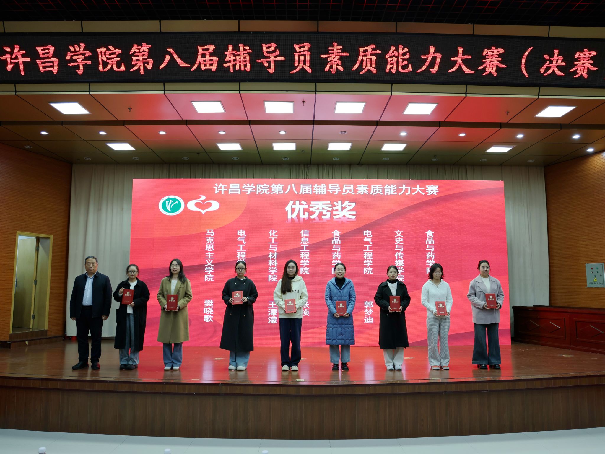 10月7日下午,許昌學(xué)院第八屆輔導(dǎo)員素質(zhì)能力大賽在學(xué)術(shù)報(bào)告廳圓滿結(jié)束。我院輔導(dǎo)員魯自軒、侯林男分別榮獲一等獎(jiǎng)和優(yōu)秀獎(jiǎng),我院榮獲大賽優(yōu)秀組織獎(jiǎng)。