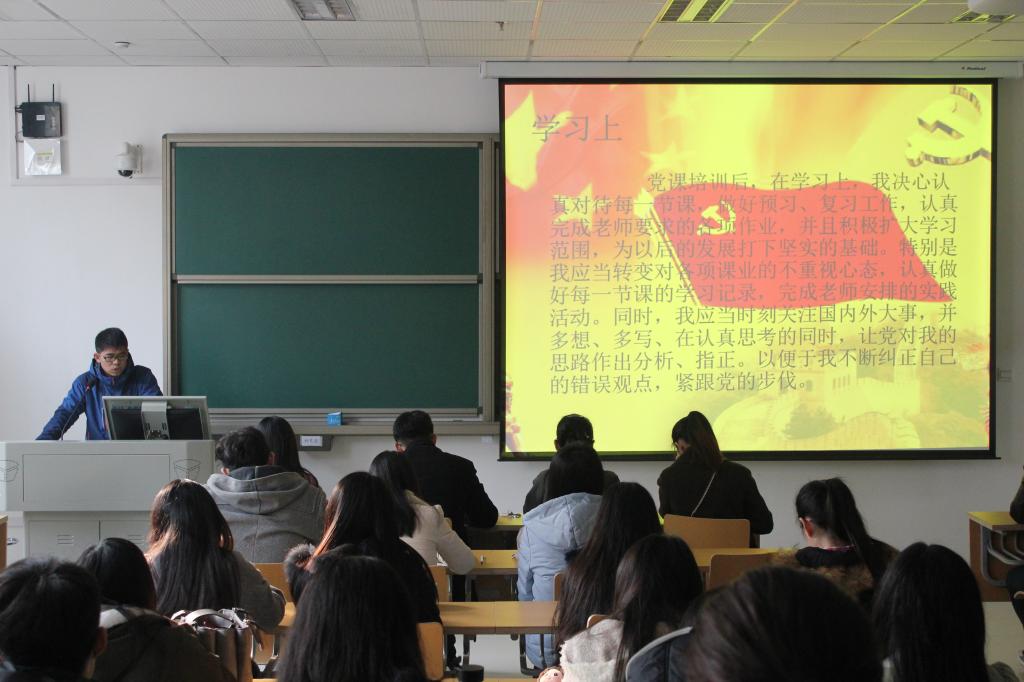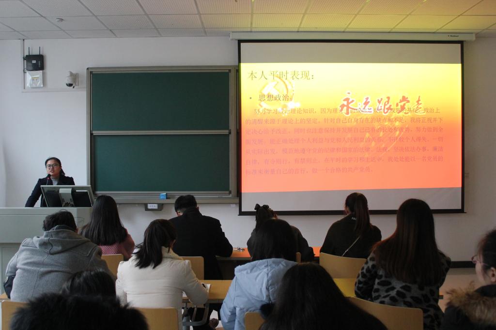 訾冉老師首先發(fā)言,希望各位黨員發(fā)展對象和入黨積極分子能夠利用這次匯報答辯的機會,進一步增強黨性意識,提高黨性修養(yǎng),不斷進行總結(jié)和完善自身,在思想上和行動上積極向黨組織靠攏。匯報答辯環(huán)節(jié),各位黨員發(fā)展對象就自己在校期間的個人經(jīng)歷、取得的成績、成為入黨積極分子后的表現(xiàn),以及今后的努力方向等方面進行了匯報答辯。