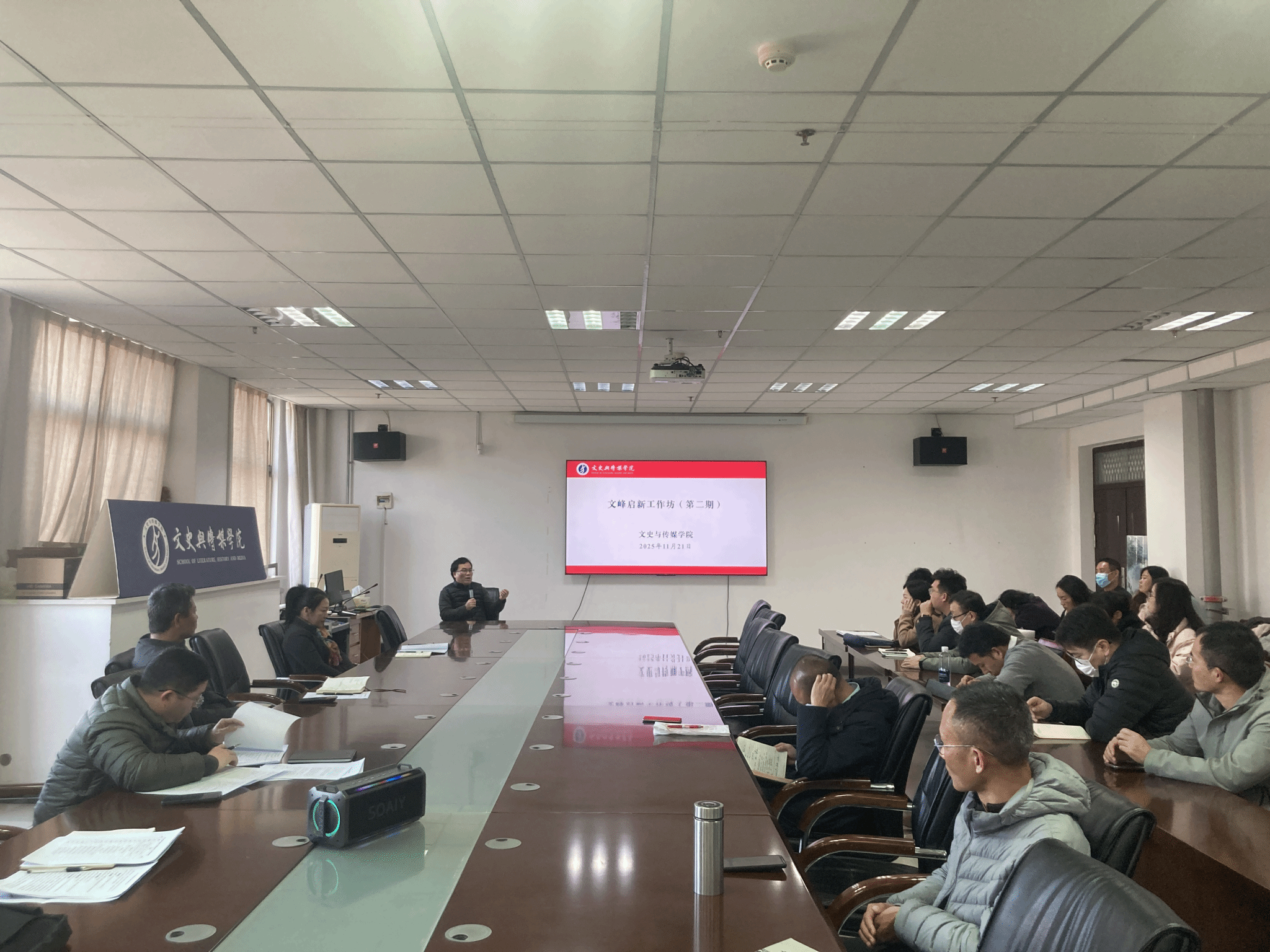 2025年11月21日,我院在文綜樓1723會(huì)議室舉辦文峰啟新工作坊第二期。本期工作坊由我院黨委書(shū)記李立夏主持,領(lǐng)導(dǎo)班子成員及全體教師參加。