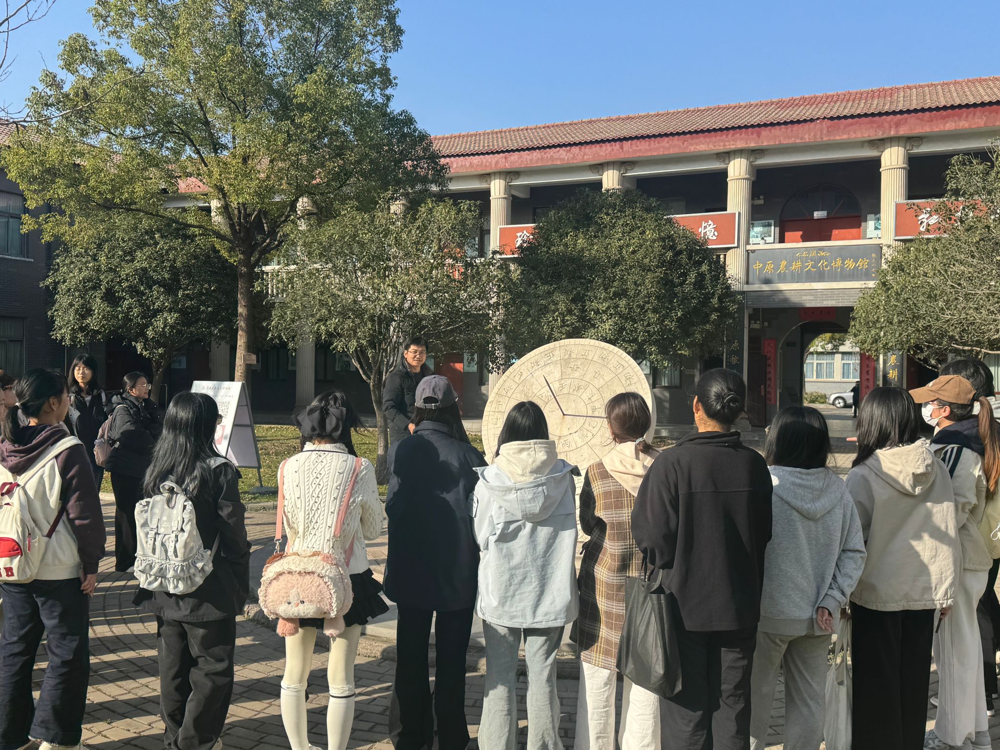 張文東圍繞中華優(yōu)秀傳統(tǒng)文化,結(jié)合我校中原農(nóng)耕文化博物館藏品開展講解,從曲轅犁的耕作智慧到紡花車的生活印記,從石磨石碾的糧食加工技藝到日晷的計時原理,系統(tǒng)梳理了中原農(nóng)耕文化的發(fā)展脈絡(luò)。在日晷展區(qū),張文東結(jié)合專業(yè)詳細(xì)講解了日晷“觀象授時”“以農(nóng)立國”的文化內(nèi)涵,解讀其背后蘊(yùn)含的古人對自然規(guī)律的認(rèn)知與敬畏,以及與二十四節(jié)氣、農(nóng)耕生產(chǎn)的深度關(guān)聯(lián),讓大家直觀感受到中華優(yōu)秀傳統(tǒng)文化的厚重底蘊(yùn)與科學(xué)智慧。