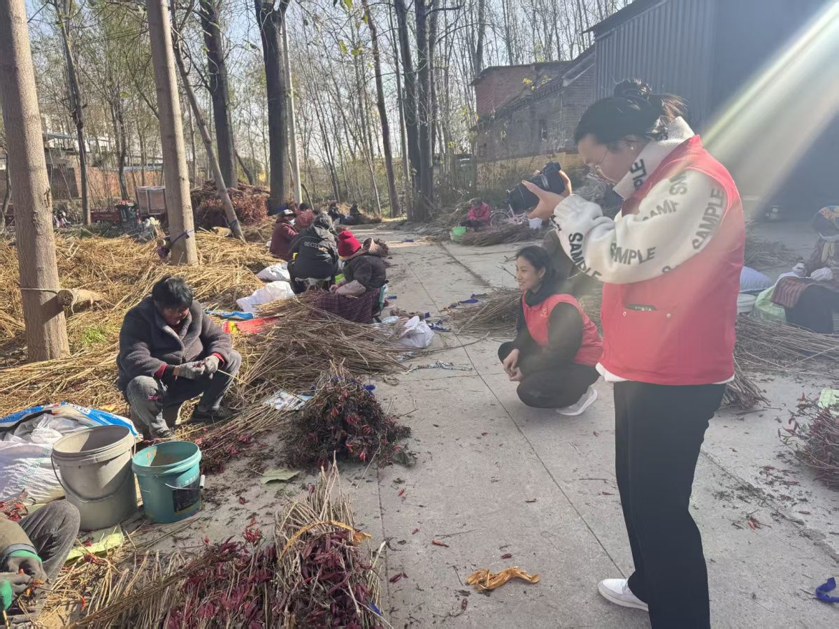 另一組則悄然深入村莊的肌理。農(nóng)家院里,剝花生的窸窣聲、蒸紅薯的氤氳香氣被收錄;田間地頭,辣椒從采摘到加工的全過(guò)程成為焦點(diǎn)。然而,記錄很快便越過(guò)了旁觀者的界限。隊(duì)員們放下相機(jī),挽起袖子,加入勞作的隊(duì)伍。手指被辣椒染紅、刺痛,汗水滴入泥土,在與村民并肩剝椒、閑話家常的簡(jiǎn)單互動(dòng)中,一種真實(shí)的連接悄然建立。
