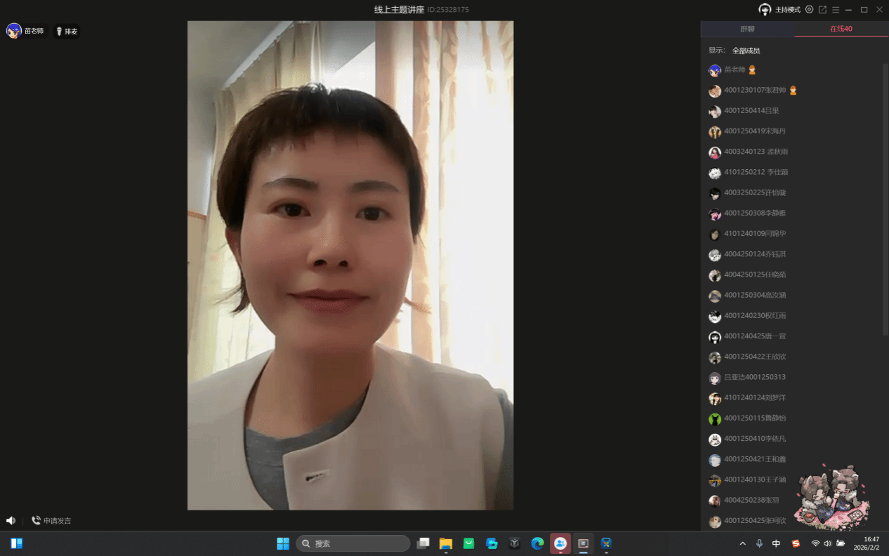 為提升學生溝通能力,引導同學們在人際交往中建立健康的溝通模式,2026年2月2日,我院特邀播音與主持藝術系苗陽老師開展“突圍溝通困境”線上專題講座。本次講座聚焦大學生在不同情境下面臨的溝通挑戰(zhàn),為同學們提供可落地的溝通解決方案。
