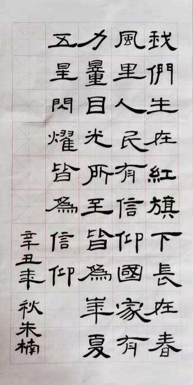 2021年9月12日—9月18日為第24屆全國推廣普通話宣傳周,許昌學(xué)院文史與傳媒學(xué)院老師及同學(xué)共同參與此次推廣活動。圍繞“普通話誦百年偉業(yè),規(guī)范字寫時代新篇”的活動主題,我院征集關(guān)于“永遠(yuǎn)跟黨走”系列毛筆書法藝術(shù)作品。與此同時,我院播音與主持專業(yè)學(xué)生積極參加由“舌尖許昌”平臺舉辦的“漢醬杯”漢賦誦讀大賽,取得優(yōu)異成績。毛筆作品如下: