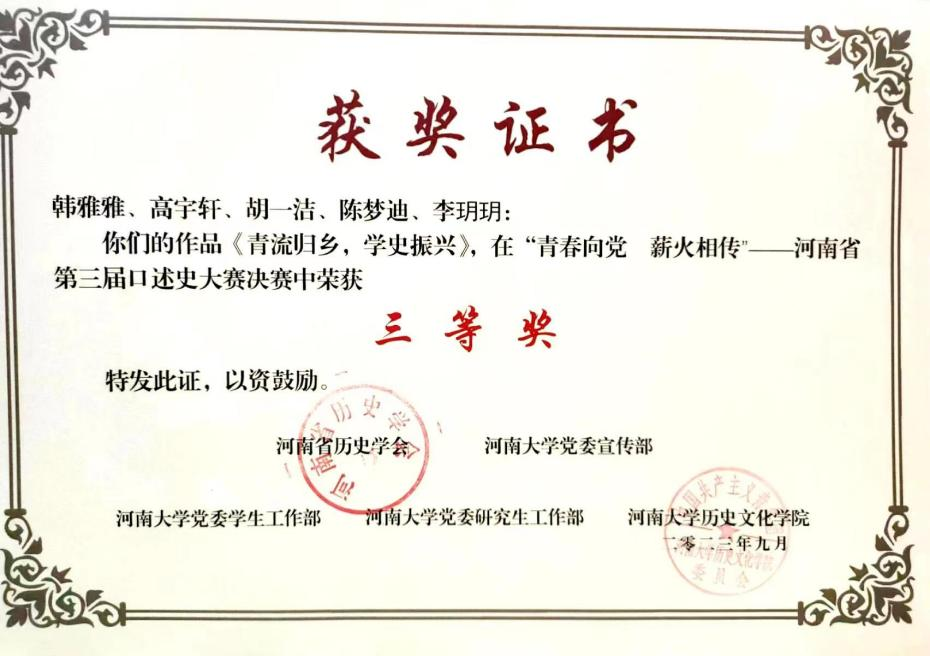 近日,河南省第三屆口述史大賽決賽公布獲獎名單,由文史與傳媒學院發(fā)起,法學院、馬克思主義學院共同參與的“溯史遇未來”團隊榮獲三等獎。我校在全省高校中排名第三,獲獎總分與獲獎層次均居全省同類院校前列。
