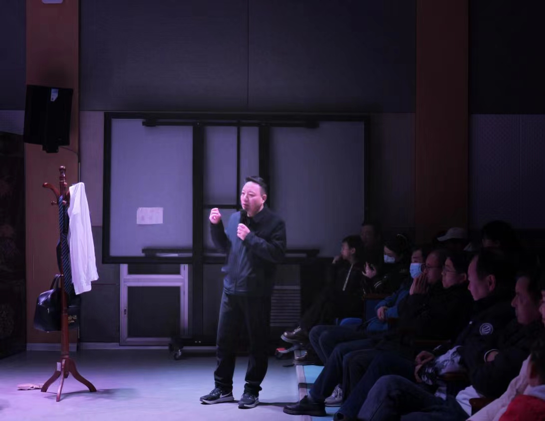 許昌市曲藝家協(xié)會(huì)主席宋偉老師結(jié)合自身演出經(jīng)歷,充分肯定學(xué)生表演的基礎(chǔ)上,對(duì)演員臺(tái)詞進(jìn)行指導(dǎo)與點(diǎn)評(píng),勉勵(lì)演員“不要過于依賴麥克風(fēng),自身臺(tái)詞功底一定要過硬”。