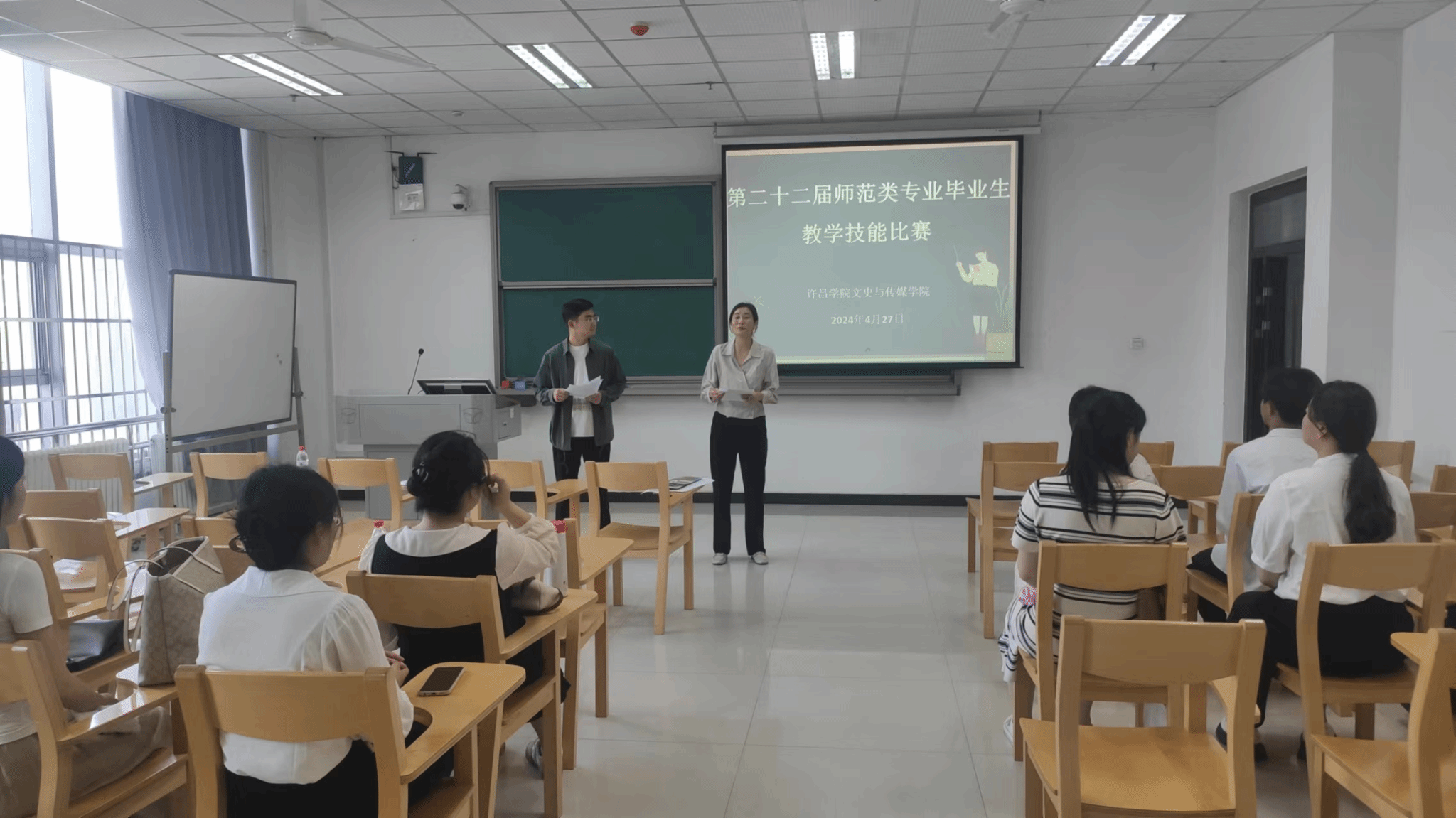 為全面提升我院師范生的綜合教學(xué)能力與專業(yè)素養(yǎng),并選拔優(yōu)秀選手參加學(xué)校年度師范專業(yè)畢業(yè)生教學(xué)技能比賽,2025年4月27日上午,文史與傳媒學(xué)院在文科樓成功舉辦2025屆師范畢業(yè)生教學(xué)技能大賽決賽。本次決賽分為三個小組同步進行,涵蓋漢語言文學(xué)與歷史學(xué)兩個專業(yè)。經(jīng)過初賽選拔,共有25名選手晉級決賽。大賽特邀許昌市八中王林花老師、我院教學(xué)論教師劉沙沙老師、孫靜華老師等擔(dān)任評委。