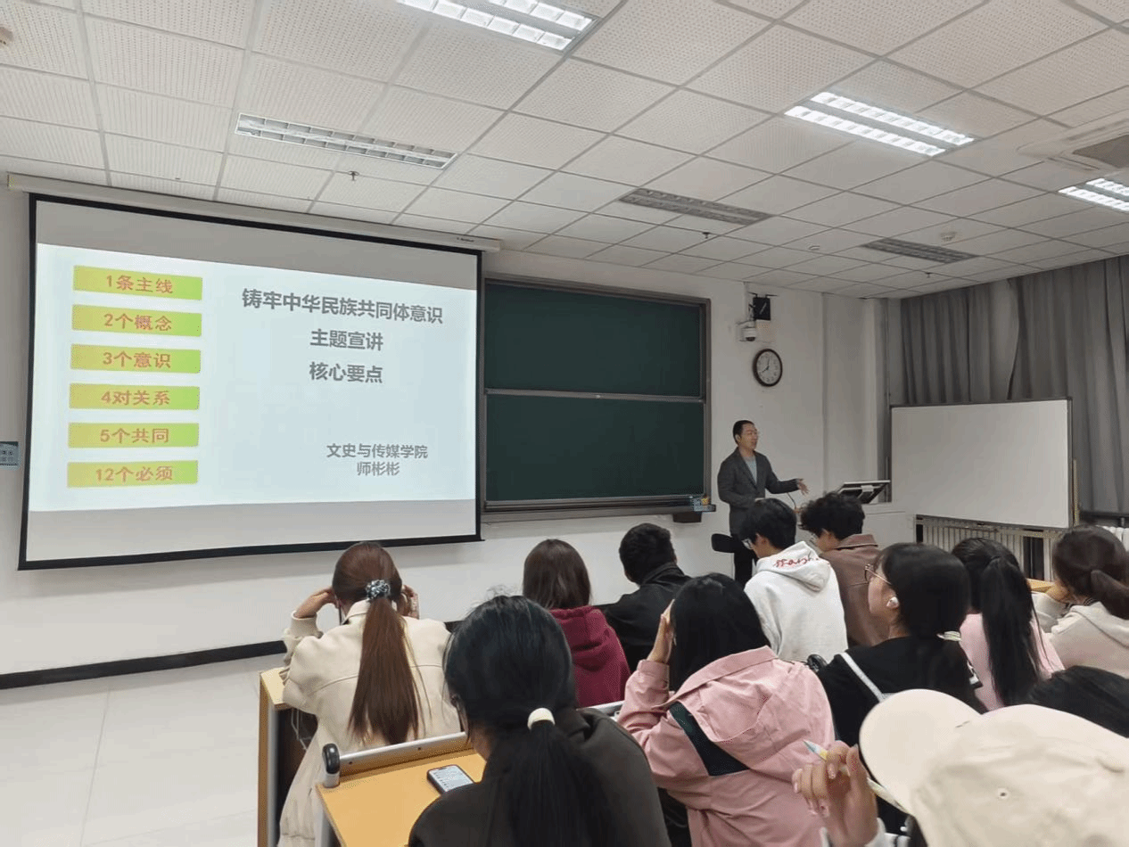 為鑄牢青年學生的中華民族共同體意識,11月2日,我院在文綜樓309成功舉辦“鑄牢中華民族共同體意識”主題宣講。本次宣講由文史與傳媒學院教師師彬彬博士擔任主講人,我院2025級新生參加宣講。