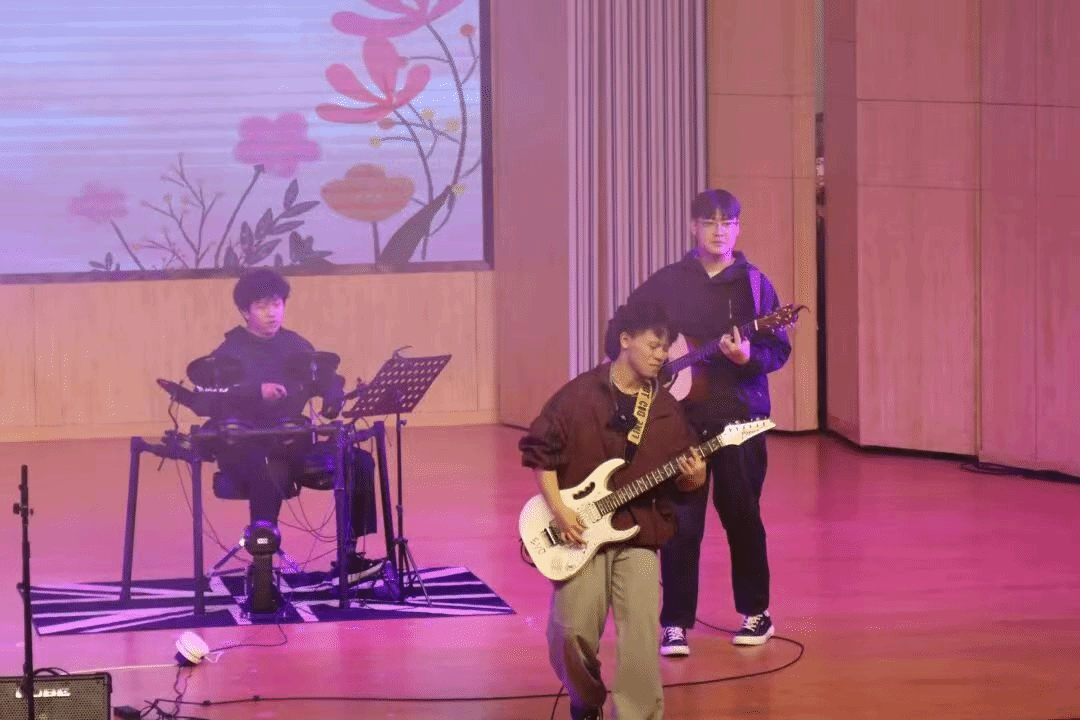 匯演在輕快的吉他彈唱《一起跳舞吧》中拉開帷幕,明朗的歌聲伴著旋律流淌,臺(tái)下校友與新生手持熒光棒輕輕搖晃,現(xiàn)場(chǎng)瞬間沉浸在溫馨氛圍里。隨后,爵士舞《Zoom》登場(chǎng),舞者們以利落的動(dòng)作、飽滿的表現(xiàn)力詮釋動(dòng)感節(jié)拍,每一次肢體舒展都贏得滿堂掌聲。民樂合奏《月光下的鳳尾竹》則悄然切換畫風(fēng),婉轉(zhuǎn)的民樂與舞者的輕盈舞姿相融,雅致詩意在音樂廳內(nèi)靜靜彌漫。