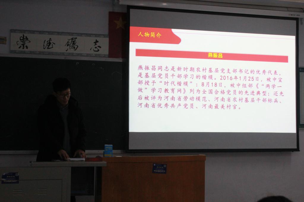 為扎實(shí)推進(jìn)“兩學(xué)一做”學(xué)習(xí)教育,豐富黨員的精神文化生活,構(gòu)建愛黨愛國的文化氛圍,進(jìn)一步掀起學(xué)習(xí)宣傳燕振昌先進(jìn)事跡的熱潮。3月7日晚七點(diǎn),我院在C樓301教室開展了“紅色放映廳”黨建特色品牌活動,組織全體黨員觀看戲曲電影《村魂燕振昌》。活動由團(tuán)總支副書記訾冉主持,我院全體黨員、預(yù)備黨員、入黨積極分子參與了本次活動。