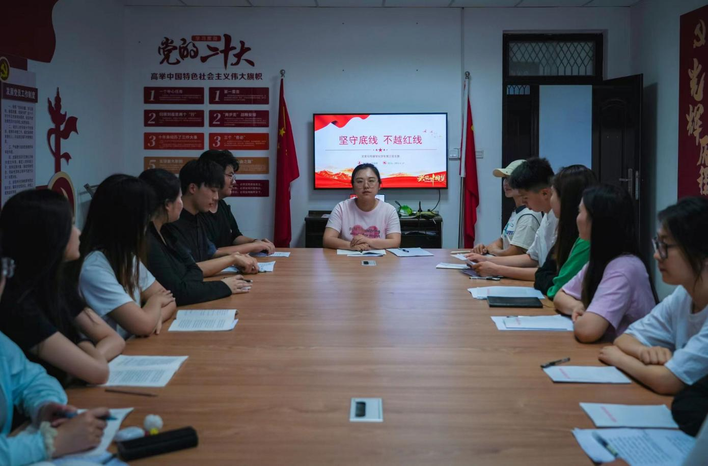 為了加強學生黨員對黨紀的學習,2024年6月14日,文史與傳媒學院學生第三黨支部在文綜樓1509會議室開展主題為《堅守底線,不越紅線》的紀律專題黨課學習,旨在引導學生黨員學紀、知紀、明紀、守紀,并通過觀看警示教育片深化學生黨員對黨紀的理解和遵守。本次黨課由學生第三黨支部書記張姍姍老師主講。