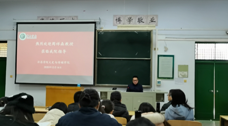 12月7日上午,河南大學(xué)周祥森教授應(yīng)邀在B合十四教室為我院師生作“史學(xué)論文引言寫作的兩個基本要素”的學(xué)術(shù)講座。出席本次講座的有文史與傳媒學(xué)院院長尤建設(shè),我院歷史學(xué)專業(yè)部分教師和2019級、2020級歷史學(xué)專業(yè)學(xué)生。