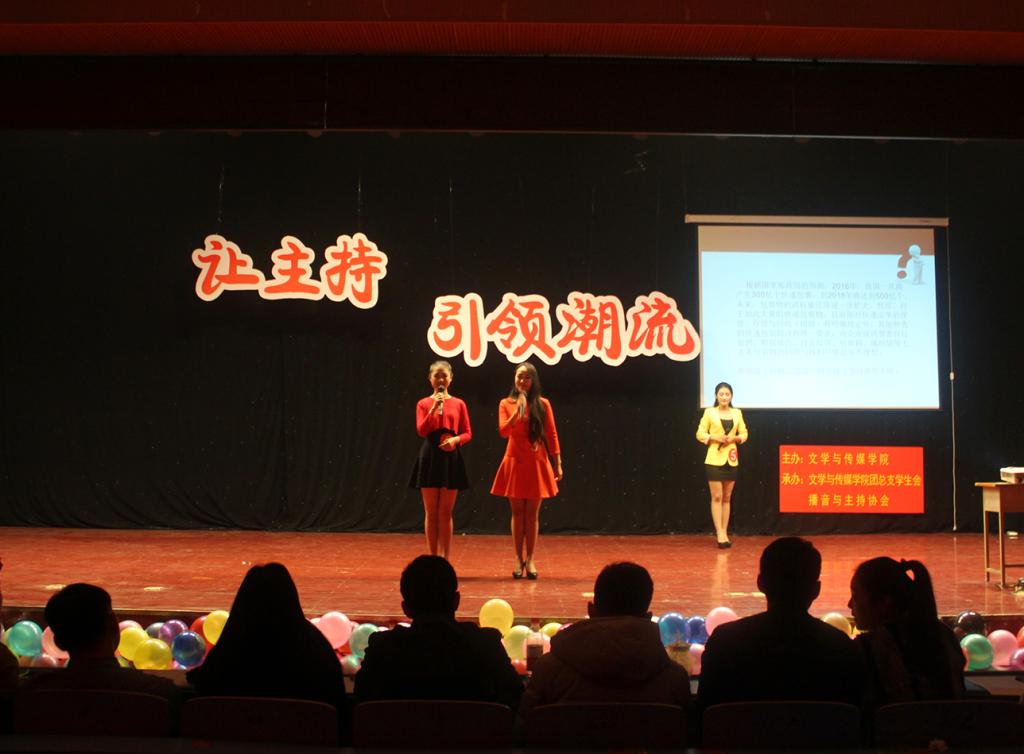 11月20日晚18點30分許,由文學與傳媒學院主辦,播音主持協(xié)會承辦的“讓主持引領潮流”暨第六屆主持人風采大賽總決賽在大學生活動中心拉開帷幕。本次決賽邀請文學與傳媒學院團總支副書記訾冉、輔導員周馳程及播音主持專業(yè)的老師們擔任評委,我院各專業(yè)熱愛主持的學生觀看了本次決賽。