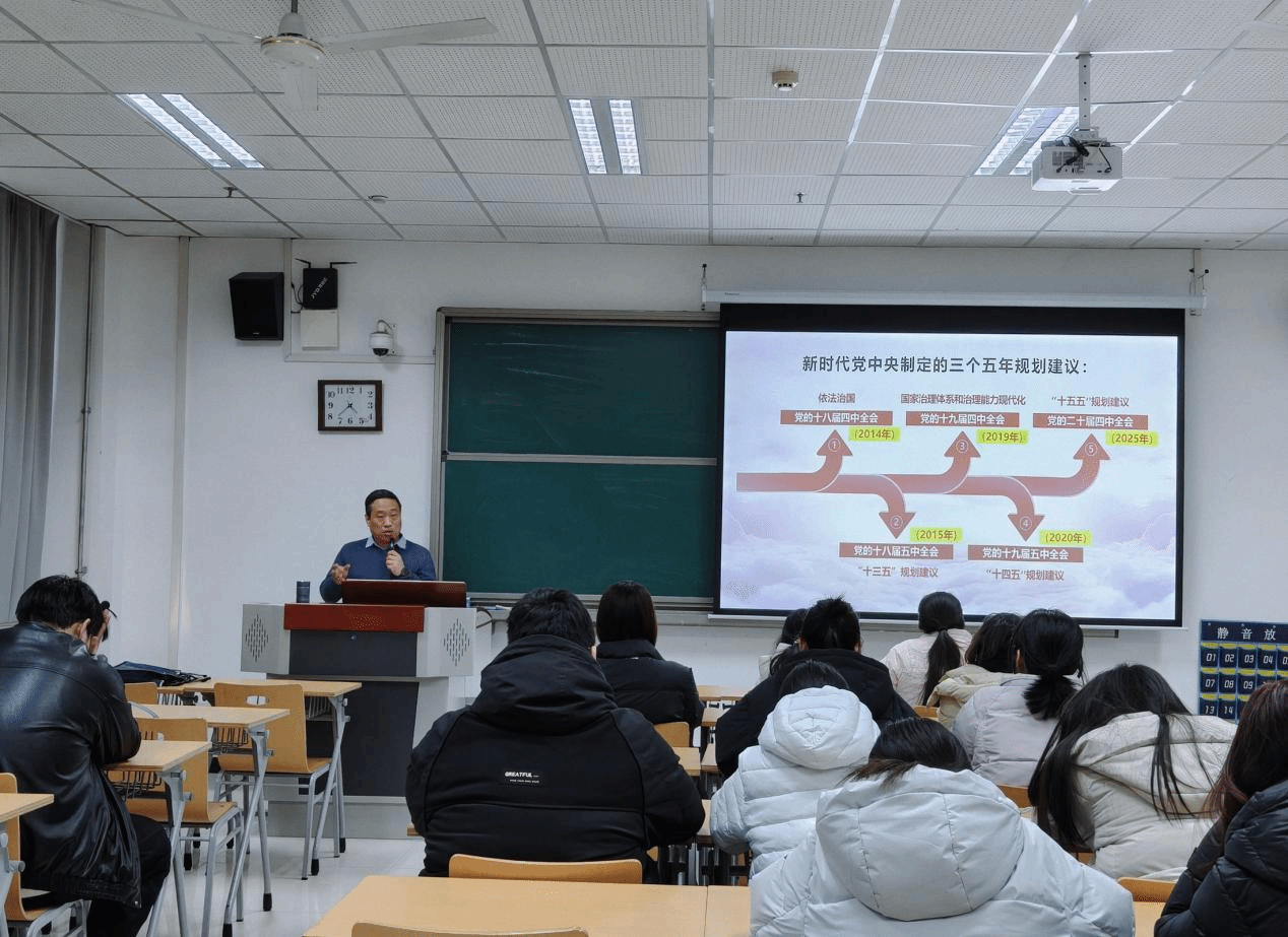 課上,周部長首先以“背景怎么看、未來怎么辦、我們?cè)趺锤伞睘榭蚣埽到y(tǒng)闡釋了黨的二十屆四中全會(huì)的重大意義與核心內(nèi)容。他指出,黨的二十屆四中全會(huì)是在“十四五”規(guī)劃即將收官、“十五五”規(guī)劃即將啟幕的關(guān)鍵節(jié)點(diǎn)召開的重要會(huì)議,其具有重大時(shí)代價(jià)值與深遠(yuǎn)意義。他強(qiáng)調(diào)了教育的基礎(chǔ)性、先導(dǎo)性、全局性地位,以及青年學(xué)生在建設(shè)現(xiàn)代化強(qiáng)國中肩負(fù)的光榮使命,引導(dǎo)同學(xué)們?nèi)胬斫?/span>“十五五”時(shí)期我國經(jīng)濟(jì)社會(huì)發(fā)展的指導(dǎo)思想、主要目標(biāo)、重點(diǎn)任務(wù)和重大舉措。