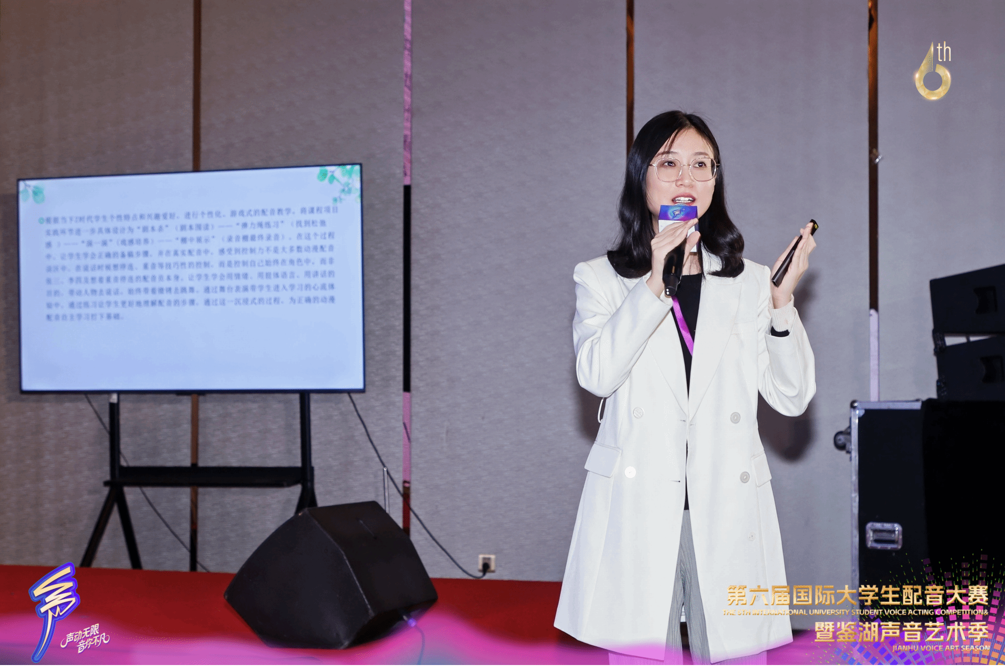 本次配音大賽上,張懿、高晗兩位老師帶領(lǐng)同學(xué)們參加了學(xué)術(shù)研討會、聲浪見面會、云集夜話等活動。值得一提的是,張懿老師從百名投稿者中脫穎而出,作為六位代表發(fā)言人之一參與學(xué)術(shù)交流圓桌討論,進(jìn)行了教學(xué)經(jīng)驗的分享。此次大賽通過學(xué)界與業(yè)界的交流對話,探索聲音教育、影視創(chuàng)作與文化傳播的深度融合路徑,詮釋了“以聲育人、以聲逐夢”的信念。