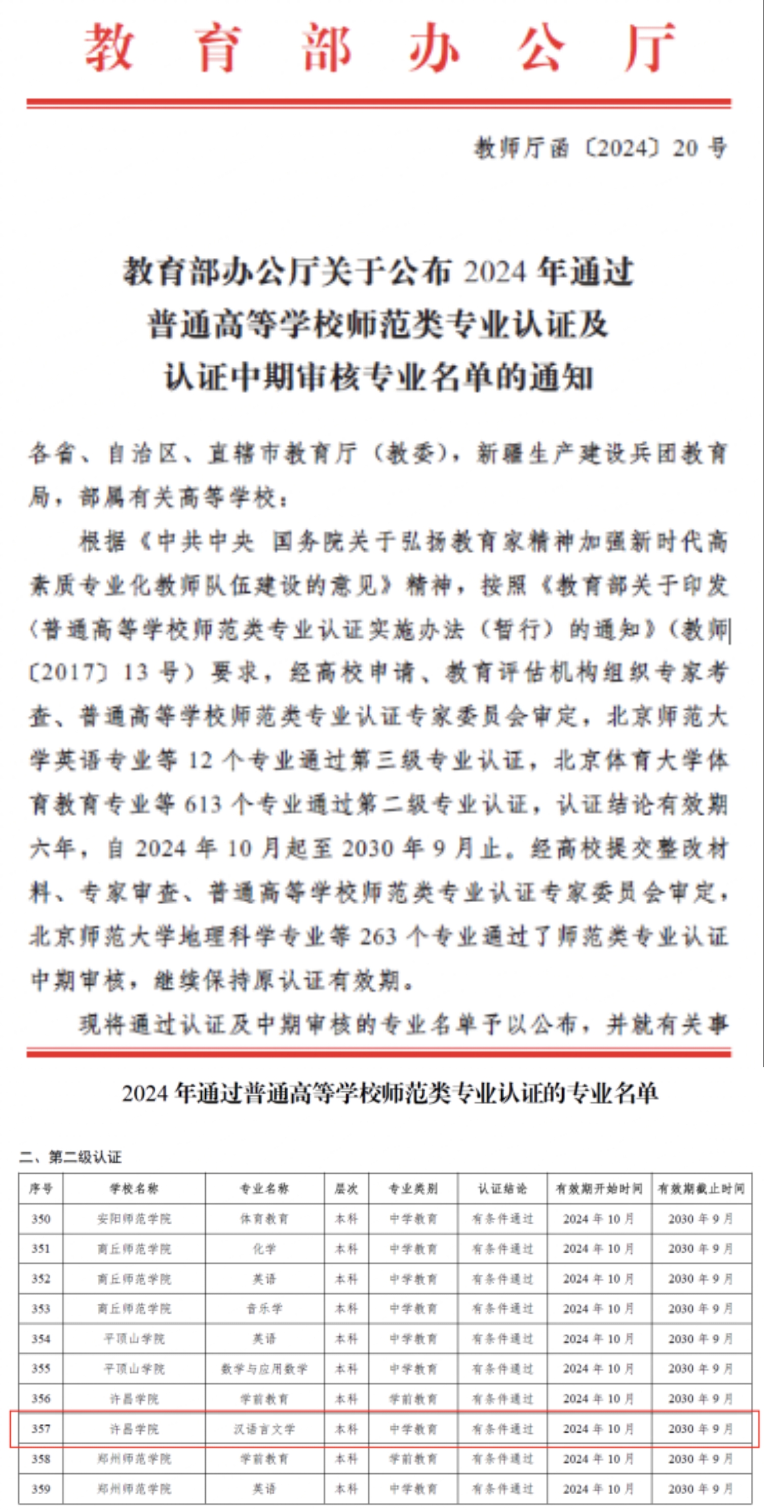 近日,教育部辦公廳公布了2024年通過普通高等學(xué)校師范類專業(yè)認證專業(yè)名單。我院漢語言文學(xué)專業(yè)在名單之內(nèi),順利通過教育部師范類專業(yè)第二級認證。