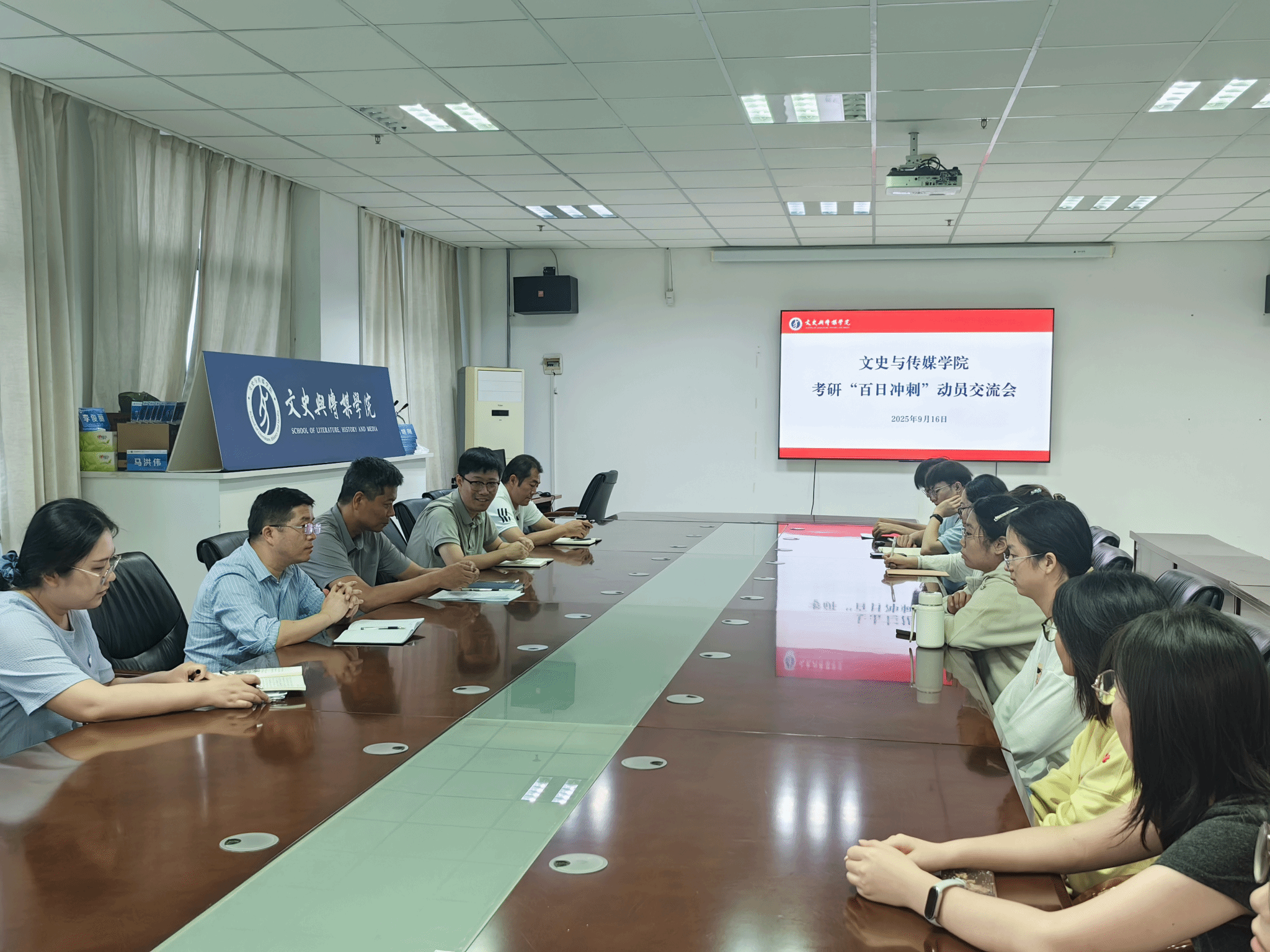 2025年9月16日上午,我院在文綜樓1723會議室舉行2026屆畢業(yè)生就業(yè)教育“開學(xué)第一課”暨考研“百日沖刺”動員大會。我院黨委書記李立夏、黨委副書記訾冉、副院長韓啟振、畢業(yè)班輔導(dǎo)員以及部分2026屆畢業(yè)生共同參加了此次會議。